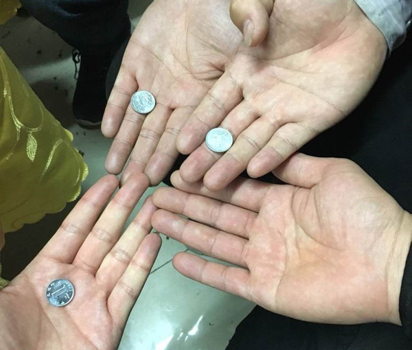 接下來進(jìn)入一發(fā)不可收拾的環(huán)節(jié),包餃子的時候,活動籌備組特意準(zhǔn)備30多個硬幣放在餃子里,吃到硬幣的幸運(yùn)職工小伙伴們可以兌換獎金。1毛硬幣兌換10元,5毛硬幣兌換50元。