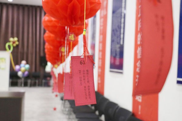 燈謎是我國(guó)特有的一種雅俗共賞、民間風(fēng)格濃郁的文字聯(lián)想游戲,它啟迪思維、陶冶情操、開發(fā)智力、增長(zhǎng)知識(shí)、歷來(lái)深受廣大群眾所喜愛。今年的燈謎設(shè)計(jì)是結(jié)合企業(yè)年度經(jīng)營(yíng)目標(biāo)、四星文化、產(chǎn)品知識(shí)和國(guó)學(xué)文化及謎語(yǔ)混搭的方式出題,得到了員工踴躍參與。