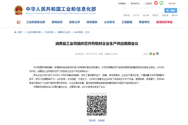 工信部消費品工業司組織召開藥包材企業生產供應視頻會議